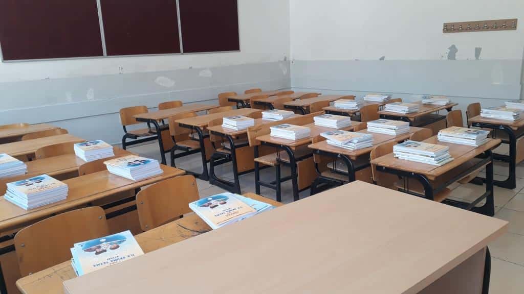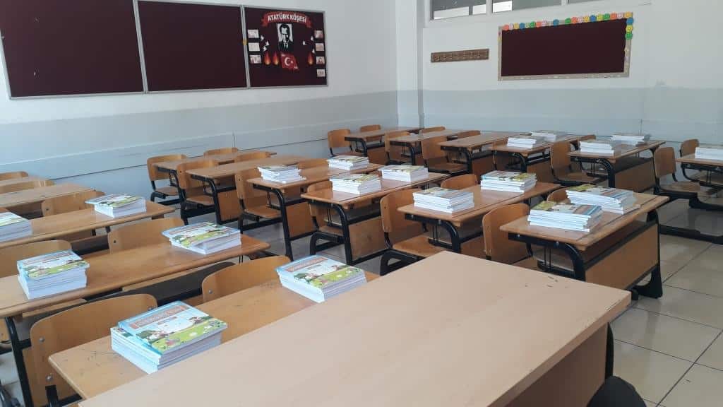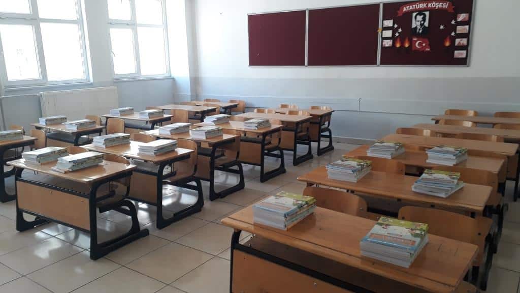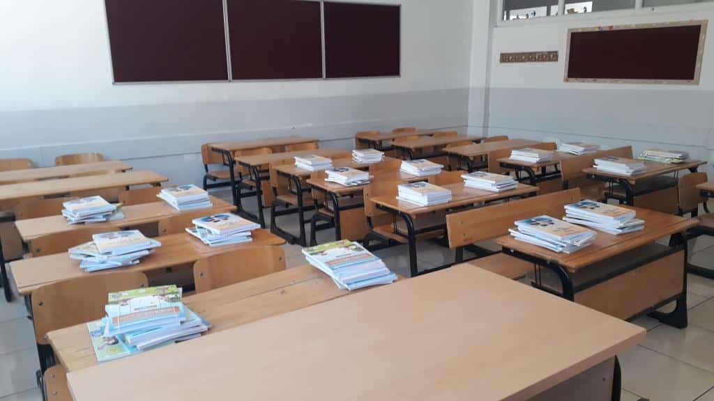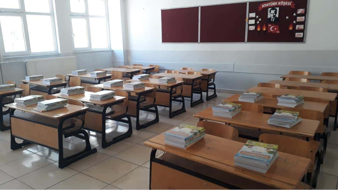 1.sınıf öğrencilerimizin ders kitapları sıralarına bırakıldı ve öğrencilerimizi bekliyoruz.